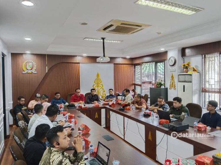 Suasana rapat lanjutan Komisi I DPRD Pekanbaru bersama Diskominfo, Dinas PUPR, DPMPTSP, Satpol PP, APJATEL, dan APJII Wilayah Riau, Kamis (14/8/2025).