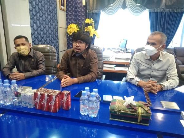 Ginda Burnama ST (tengah) didampingi Wakil Ketua DPRD Tengku Azwendi Fajri SE (kiri) dan Wakil Ketua DPRD Ir Nofrizal MM (kanan), saat memberi keterangan pers.