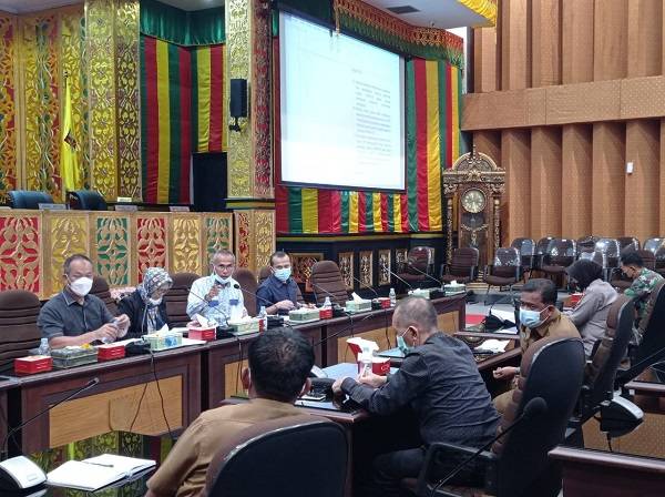 Pansus DPRD Pekanbaru menggelar rapat membahas Revisi Perda Nomor 5 Tahun 2021 tentang Perlindungan Masyarakat dari Penyebaran dan Dampak Covid-19, Senin (5/7/2021).