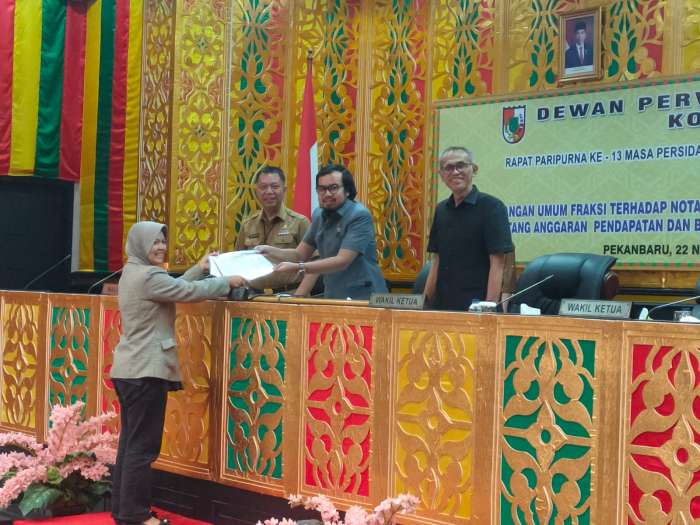 Secara umum, pandangan umum yang disampaikan fraksi-fraksi di DPRD Pekanbaru menyoroti minimnya realisasi pendapatan asli daerah sehingga tidak mencapai target.