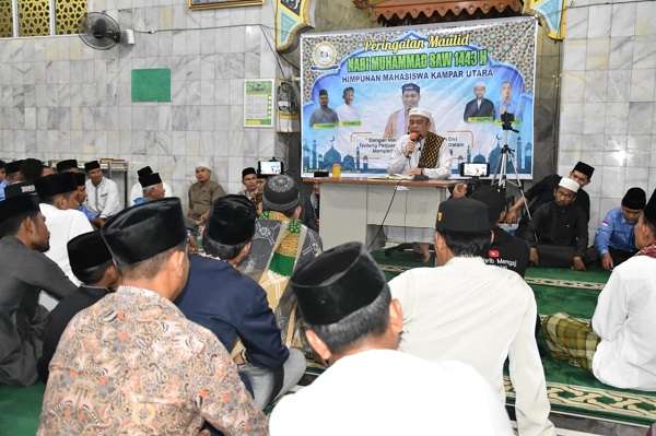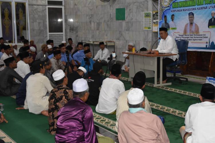 KAMPAR UTARA, datariau.com - Himpunan Mahasiswa Kampar Utara (HIMAKU) bersama masyarakat menggelar Peringatan Maulid Nabi dengan mengundang Ketua DPRD Kampar Muhammad Faisal dan ustadz kondang Samsuardi yang akrab disapa dengan Ustadz Bom Bom.