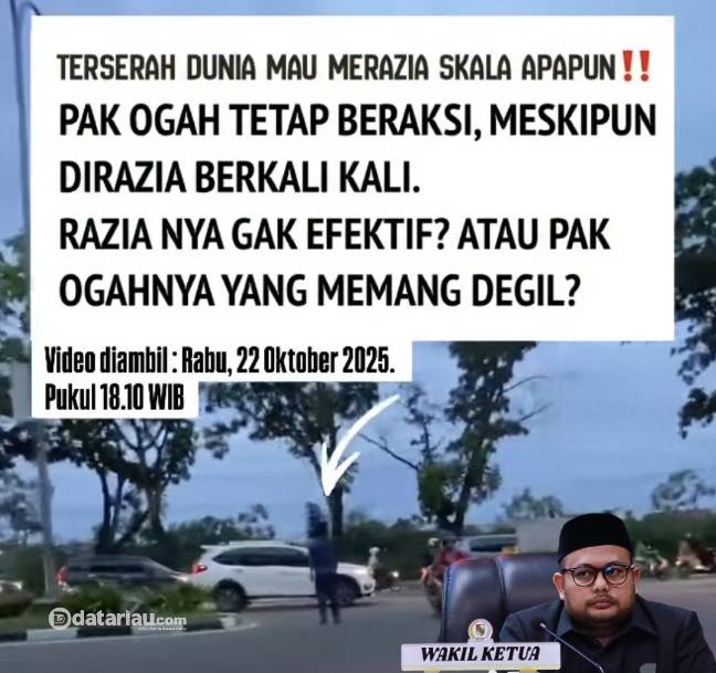 Wakil Ketua DPRD Pekanbaru, Andry Saputra, menyayangkan Pak Ogah kembali beraksi di U-Turn depan Koki Sunda, Jalan Jenderal Sudirman.