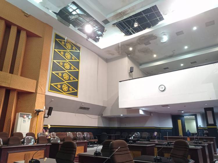 Plafon Ruang Sidang Paripurna DPRD Pekanbaru Roboh, Plt Sekwan: Anggaran Perbaikan Belum Ada