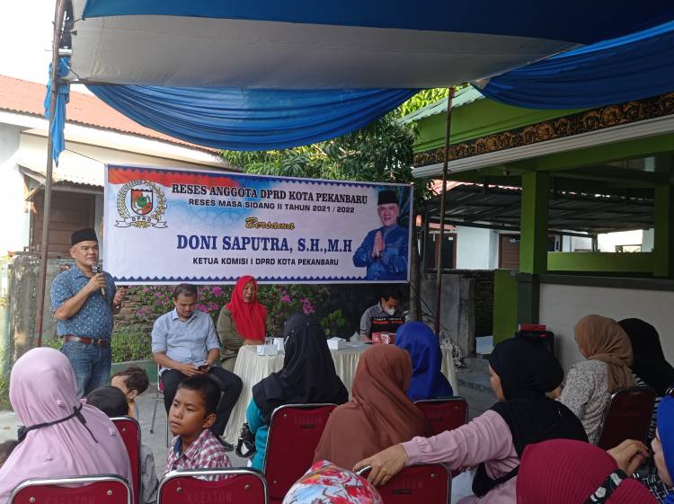 PEKANBARU, datariau.com - Anggota DPRD Pekanbaru dari Fraksi PAN, Doni Saputra SH MH melaksanan kegiatan reses di Jalan Mawar tepatnya di RT 01/RW 03, Kelurahan Padang Terubuk, Kecamatan Senapelan, Kamis sore (11/8/2022).