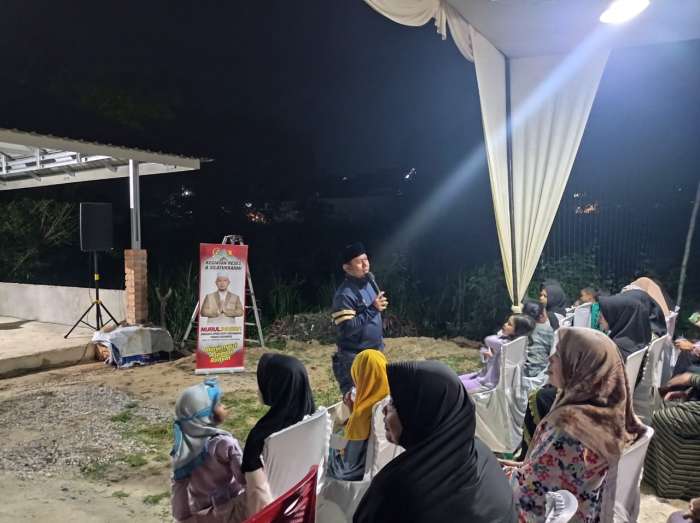 Anggota DPRD Kota Pekanbaru Nurul Ikhsan saat melaksanakan reses di Jalan Provinsi RT 06 RW 01 Kelurahan Perhentian Marpoyan Kecamatan Marpoyan Damai, Selasa (21/3/2023) malam.