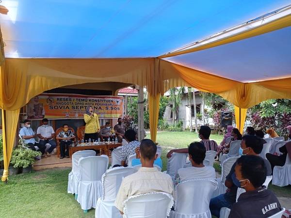 Anggota DPRD Pekanbaru Sovia Septiana SSos melaksanakan reses di Jalan Sumatera Kelurahan Sialang Sakti, Kecamatan Tenayan Raya, Ahad (29/8/2021).