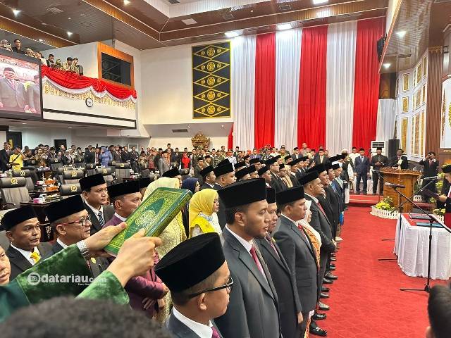 PEKANBARU, datariau.com - Sebanyak 50 Anggota DPRD kota Pekanbaru resmi dilantik dan diambil sumpah janji oleh rohaniawan di Gedung DPRD Pekanbaru Balai Payung Sekaki, Jumat (6/9/2024).