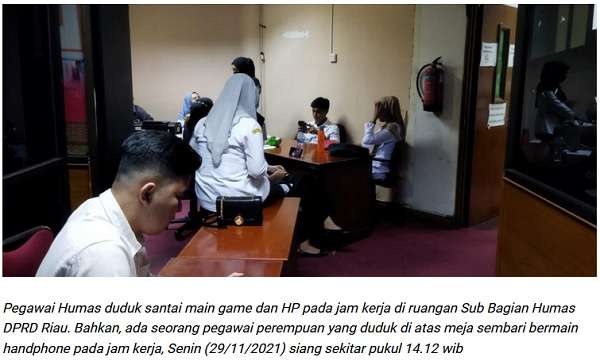 Wartawan Ru juga kerap memberitakan temuan-temuan yang janggal saat liputan di DPRD Provinsi Riau, teranyar wartawan Ru memberitakan beberapa pegawai DPRD yang asyik bermain game online di Smartphone masing-masing, bahkan dari gambar yang diambilnya, tampak pula pegawai di DPRD Riau duduk di atas meja saat jam kerja.