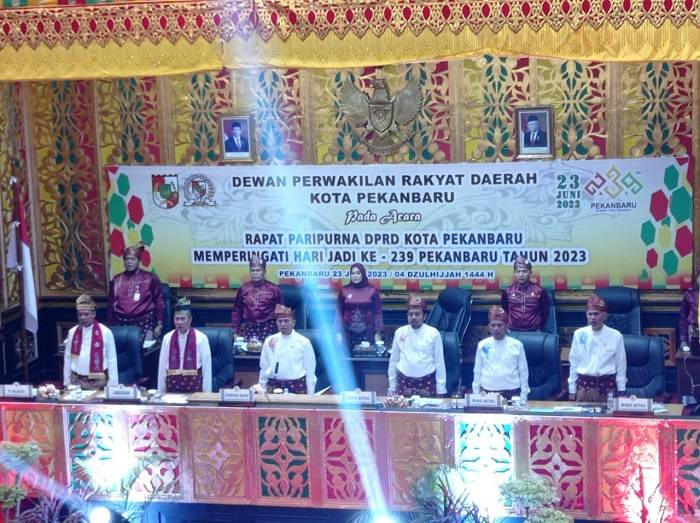 PEKANBARU, datariau.com - DPRD Kota Pekanbaru menggelar rapat paripurna istimewa dalam rangka memperingati Hari Jadi Kota Pekanbaru ke-239 tahun, Jum'at (23/6/2023).