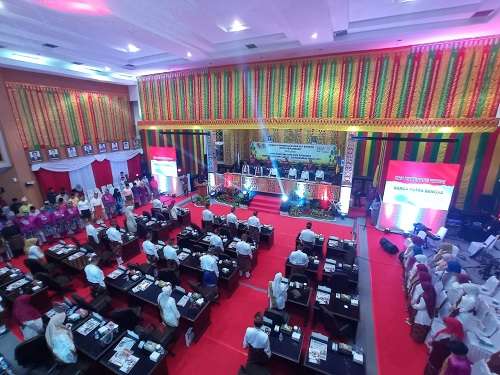Paripurna berlangsung di Ruang Paripurna Balai Payung Sekaki DPRD Kota Pekanbaru, dengan mengusung tema 'Pekanbaru Bergerak, Tumbuh dan Bermarwah'.