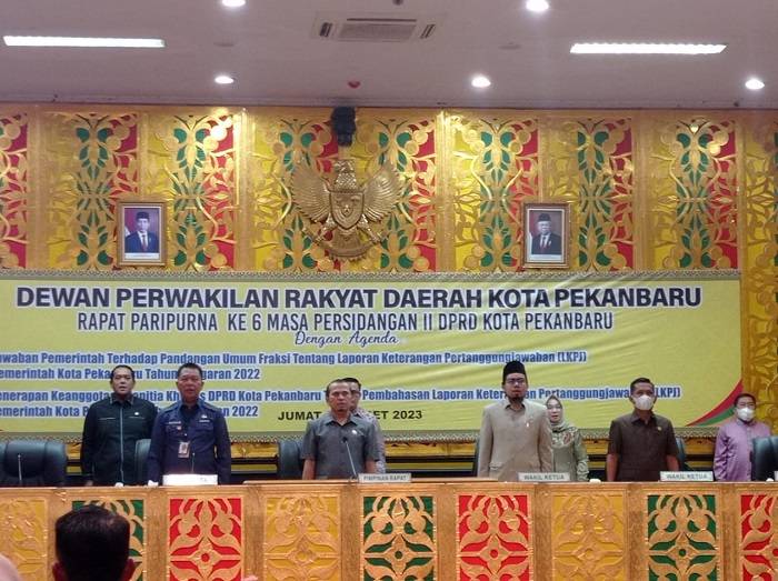 PEKANBARU, datariau.com - DPRD Kota Pekanbaru kembali menggelar Rapat Paripurna Jawaban Pemerintah terhadap Pandangan Umum Fraksi tentang Laporan Pertanggungjawaban (LKPj) Kota Pekanbaru Tahun Anggaran 2022, Jum'at (24/3/2023).