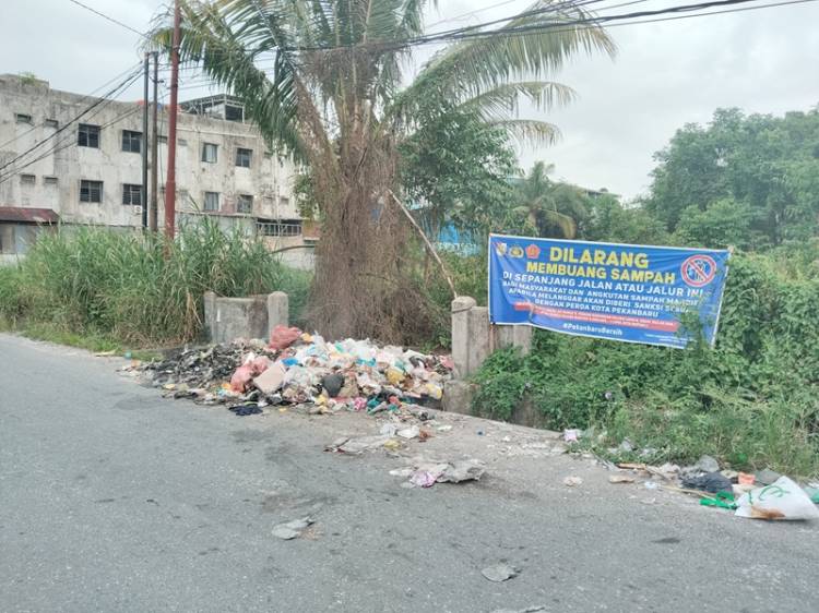 Tumpukan sampah mulai terlihat lagi di Kota Pekanbaru, tepatnya di Jalan Waringin, Kelurahan Labuh Baru Timur, Kecamatan Payung Sekaki.