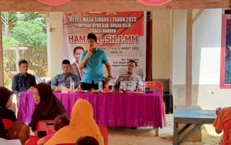 ROHIL, datariau.com - Wakil Ketua Dewan Perwakilan Rakyat Daerah (DPRD) Rokan Hilir (Rohil) Hamzah SHI MM mengelar kegiatan reses di Kecamatan Bagan Sinembah dan Bagan Sinembah Raya, Rokan Hilir, Ahad (26/3/2023).