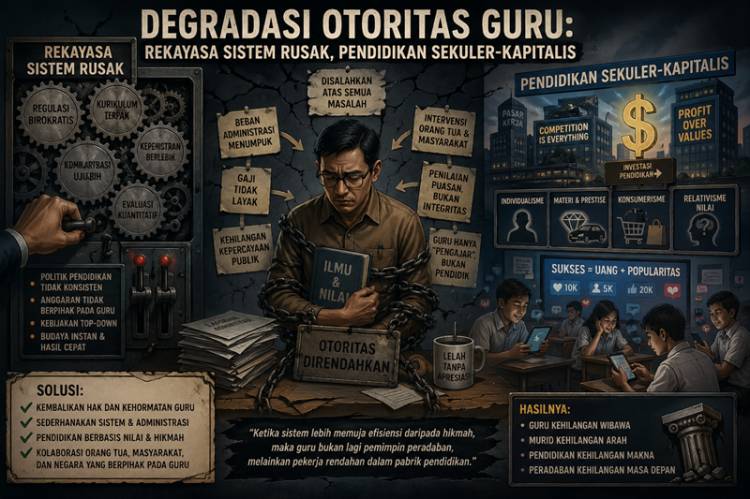 Dalam sistem pendidikan sekuler kapitalis, pembentukan karakter dengan penekanan nilai-nilai adab dan etika terhadap tenaga pendidik bukanlah hal signifikan yang diprioritaskan. Seolah guru tak lebih hanya sebagai tenaga pengajar secara fisik, secara administratif.