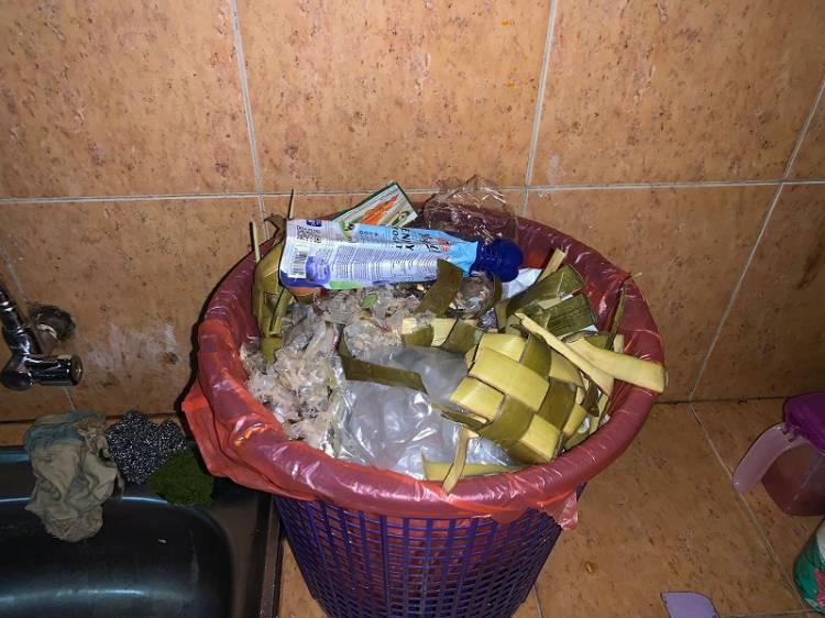 Tong sampah di rumah.