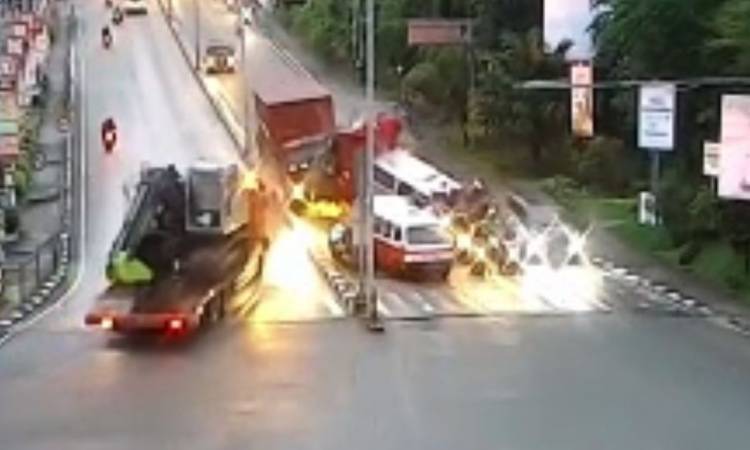 Truk kontainer tersebut diduga mengalami rem blong dan sang sopir sulit mengendalikannya. Alhasil, truk itu menabrak para pengendara motor dan mobil yang sedang berhenti di lampu merah.