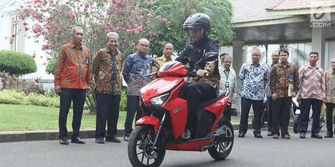 Presiden Joko Widodo Sedang Mencoba Motor Listrik Gesits.