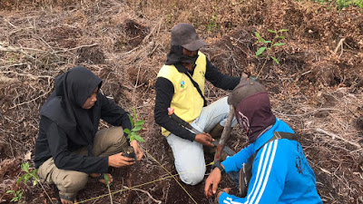 Bengkalis, datariau.com - Tim Kukerta Balek Kampung UNRI Desa Penampi 2020 melakukan kegiatan pengabdian masyarakat yaitu penanaman bibit pohon gaharu, kopi hibrida, dan petai. Penanaman bibit pohon ini dilakukan di tanah lapang yang merupakan salah satu tanah waqaf di Desa Penampi,(16/08/2020).
