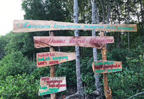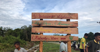 Tim Kukerta Unri membuat poster dalam bentuk papan peduli lingkungan sebanyak 15 buah yang diletakkan disepanjang jalan utama dan kawasan hutan mangrove. Dengan harapan poster tersebut dapat menjadi pengingat akan pentingnya menjaga kebersihan lingkungan, (05/08/2020).