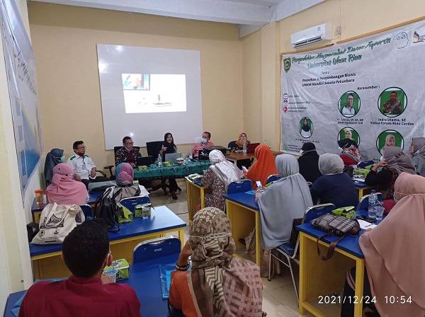 Pemaparan pemateri dipandu oleh moderator/MC Ilma Sastriana Dewi SP MSi. Pemateri perdana yaitu Indra Utama SE, sebagai Ketua Forum Riau Cerdas, menjelaskan tentang Pengembangan UMKM Naik Kelas dengan Sertifikasi Pelaku Usaha, dengan adanya sertifikasi UMKM maka akan membantu pelaku UMKM agar memiliki kompetensi di bidang penjualan dan pelayanan, meyakinkan pada pasar, pengakuan atas lintas sektor dan antar negara, pengembangan bisnisnya, serta membantu promosi produk baik di pasar nasional dan international.