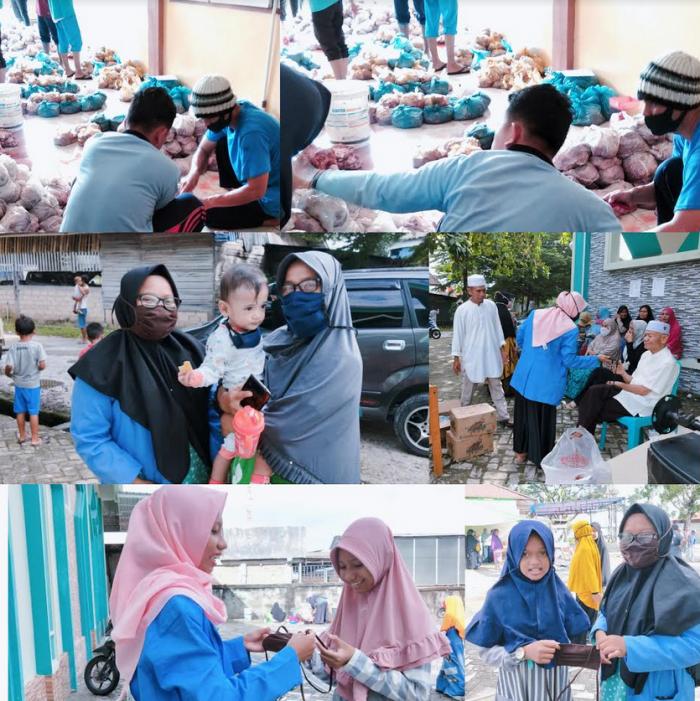 Mahasiswa UIN Suska Bagikan Masker Gratis Saat Acara Penyembelihan Hewan Kurban di Simpang Baru Panam