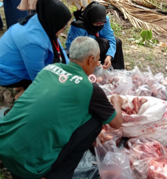 Penyembelihan Hewan Kurban di Desa Tanjuang Balik Dibantu Mahasiswa KKN-DR Plus UIN Suska Riau