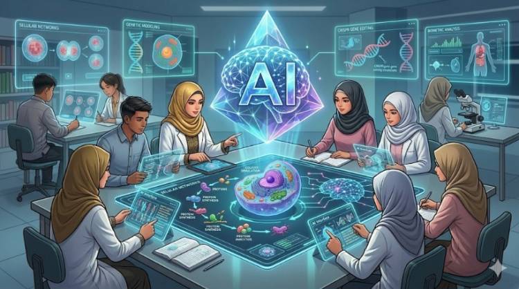 Biologi merupakan salah satu cabang ilmu sains yang mempelajari kehidupan dan proses-proses yang terjadi di dalamnya, mulai dari tingkat sel hingga ekosistem. Banyak konsep dalam biologi yang bersifat abstrak dan sulit dipahami hanya melalui penjelasan verbal atau buku teks, misalnya proses pembelahan sel, mekanisme kerja enzim, ataupun interaksi antarorganisme dalam ekosistem. Dalam kondisi seperti ini, teknologi Artificial Intelligence dapat menjadi alat bantu yang efektif untuk memvisualisasikan dan menjelaskan konsep-konsep tersebut secara lebih jelas dan menarik.