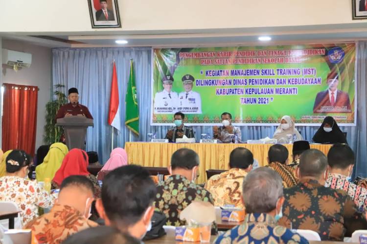 KEPULAUAN MERANTI, datariau.com - Bupati H Muhammad Adil SH ikuti acara Pengembangan Karir Pendidik dan Tenaga Kependidikan Pada Satuan Pendidikan Sekolah Dasar Manajemen Skill Training (MST) Dilingkungan Dinas Pendidikan dan Kebudayaan Kabupaten Kepulauan Meranti Tahun 2021 di Ballroom Afifa, Jalan Banglas, Kamis (15/07/2021).