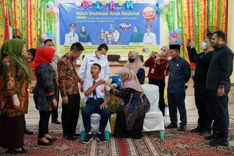 ROHIL, datariau.com - Bupati Rokan Hilir (Rohil) Afrizal Sintong secara langsung membuka pencanangan Bulan Imunisasi Anak Nasional (BIAN). Pencanangan tersebut dipusatkan di Gedung SMPN 1 Bagansiapiapi, Kamis (2/6/2022).