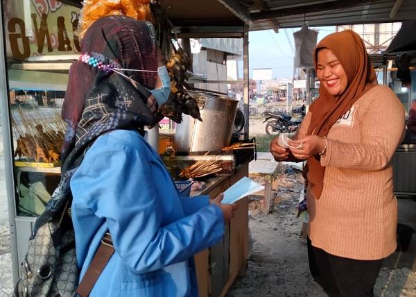 Cegah Covid-19, Mahasiswa KKN-DR UIN Suska Riau Lakukan Pembagian Masker dan Hand Sanitizer di Pasar Rakyat Tualang