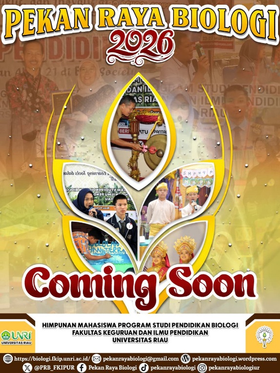 Menjawab tantangan tersebut, Program Studi Pendidikan Biologi FKIP Universitas Riau kembali mempersembahkan Pekan Raya Biologi (PRB) 2026, sebuah ajang bergengsi yang menjadi wadah eksplorasi, edukasi, dan inspirasi bagi generasi muda Indonesia. Melanjutkan kesuksesan PRB 2025, tahun ini PRB hadir dengan semangat baru bertemakan ?Optimalisasi Saintis Muda dalam Mendukung Pengembangan IPTEK yang Berorientasi Global dan Adaptif melalui Pekan Raya Biologi 2026.?