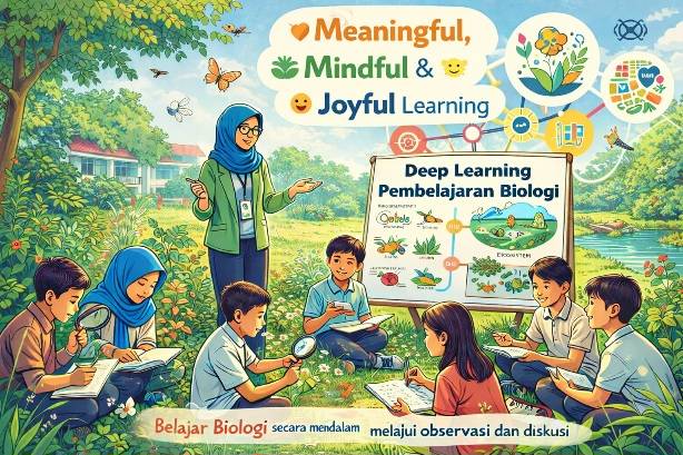Dalam beberapa tahun terakhir, istilah deep learning mulai sering dibahas dalam dunia pendidikan. Dalam konteks pendidikan, deep learning merupakan pendekatan pembelajaran yang menekankan pemahaman konsep secara mendalam sehingga siswa tidak hanya menghafal materi, tetapi juga mampu berpikir kritis dan mengaitkan pengetahuan dengan situasi nyata (Kusuma et al., 2026). Pendekatan seperti ini sangat relevan diterapkan dalam pembelajaran biologi. Banyak konsep biologi yang sebenarnya lebih mudah dipahami jika siswa dapat melihat langsung fenomenanya. Misalnya ketika mempelajari materi ekosistem. Siswa tidak hanya membaca tentang rantai makanan dalam buku, tetapi juga bisa mengamati lingkungan sekitar sekolah untuk melihat bagaimana makhluk hidup saling berinteraksi.