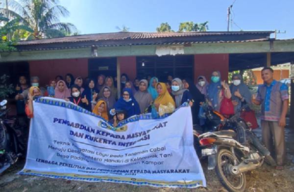 KAMPAR, datariau.com - Pengabdian kepada masyarakat (Abdimas) merupakan salah satu dari tridharma perguruan tinggi yang harus dilakukan bagi dosen, oleh sebab itu Tim dosen UNRI yang terdiri dari Ir Ardian MS (ketua) dengan anggota Ir Muriniati MP Elza Zuhri MP, Ir Nurbaiti MSi, Sri Yoseva SP MP bersama dengan 10 orang mahasiswa KKN Integrasi dengan ketua Aldi melakukan kegiatan pengabdian kepada masyarakat dan petani tentang Teknik Mengatasi Layu Pada Tanaman Cabai di Desa Padang Mutung Kecamatan Kampar.