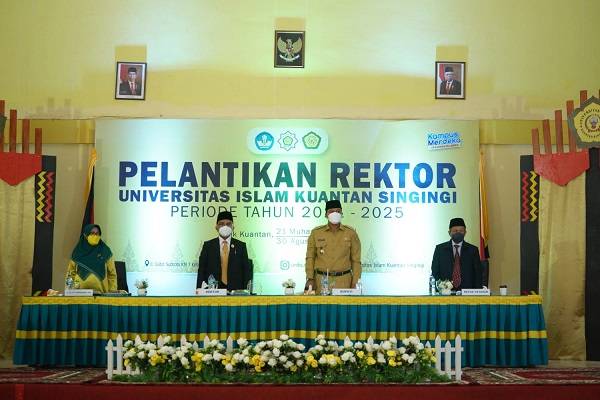 Pelantikan Rektor Universitas Islam Kuantan Singingi bertempat di gedung serbaguna, Senin (30/8/2021). Turut hadir Bupati Kuansing Andi Putra SH MH, Plt Sekda Agus Mandar, dan Para Asisten.