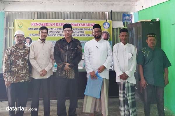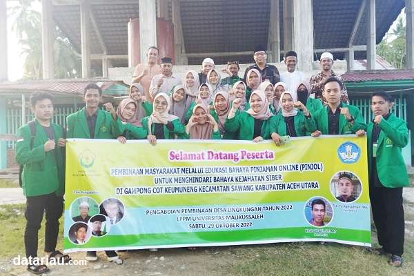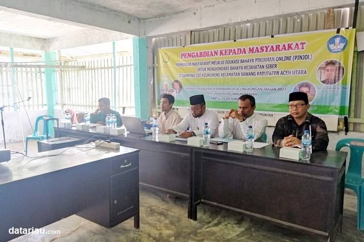 KRUENG GEUKUEH, datariau.com - Dosen kolaborasi antar Fakultas dalam lingkungan Universitas Malikussaleh mengadakan pembinaan dan edukasi kepada masyarakat tentang bahaya pinjaman online atau pinjol yang dilakukan di Gampong Cot Keumuneng, Kecamatan Sawang, Aceh Utara, Sabtu (29/10/2022).