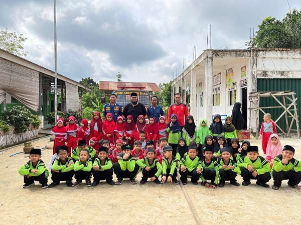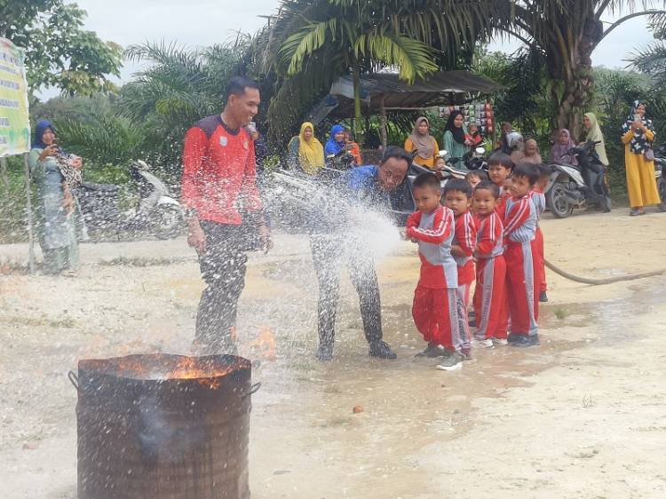 Edukasi dan Simulasi, Anak TK dan SD Imam Syafi'i Perawang Berjibaku Memadamkan Api Bersama Damkar Kecamatan Tualang