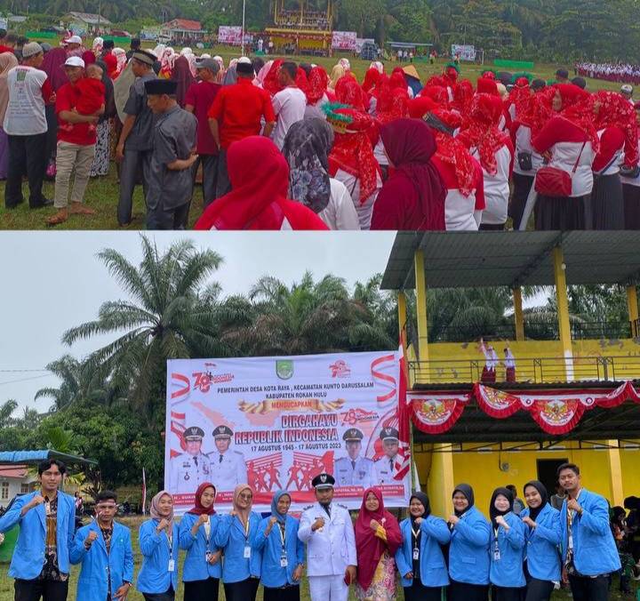 HUT Ke 78 RI, Mahasiswa Kukerta 2023 Ikut Upacara di Kecamatan Gunung Sahilan