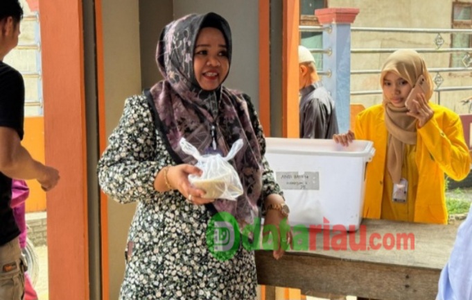 KBM Fakultas Hukum Unilak Pekanbaru Jumat Berkah di Masjid Al Ikhlas dan pembagian paket sembako di wilayah Desa Pulau Permai, Tambang, Kampar.