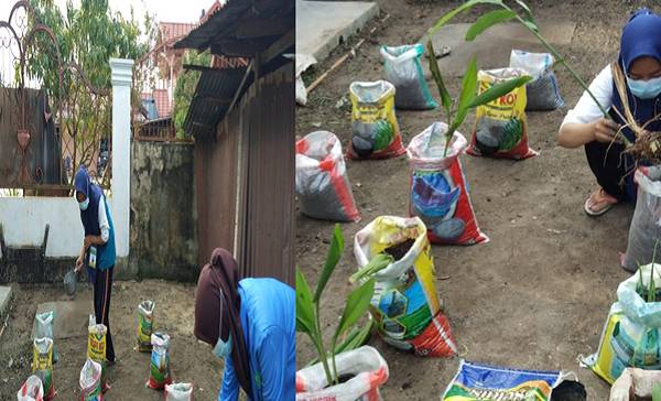 Mahasiswa KKN DR Plus UIN Suska Riau Manfaatkan Pekarangan Posyandu Sebagai Pembudidayaan Tanaman Apotek Hidup