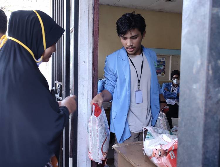 Mahasiswa KKN-DR UIN Suska Riau Bantu Pembagian Beras Kepada Warga Terdampak Pandemi