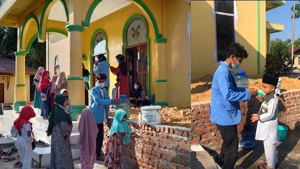 Mahasiswa KKN Sungai Mempura Bagi-bagi Masker Gratis