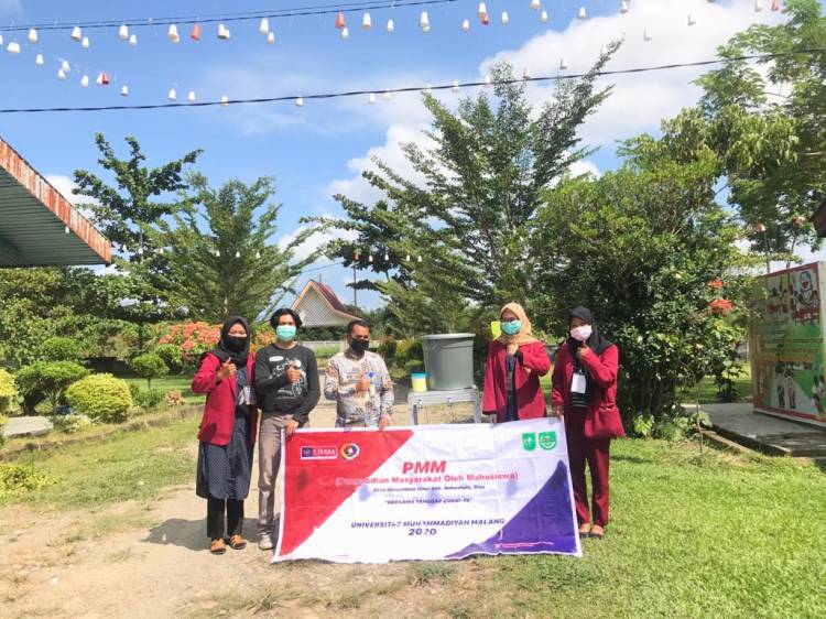 Mahasiswa KKN UMM Kelompok 40 Gagas Alat Cuci Tangan Sistem Footing pada Masa Era New Normal