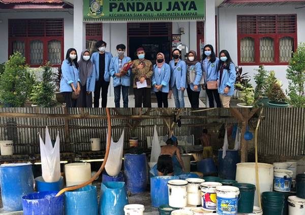 DATARIAU.COM - Mahasiswa Universitas Riau yang tergabung dalam kelompok KKN (Kuliah Kerja Nyata) di Desa Pandau Jaya Kecamatan Siak Hulu, Kabupaten Kampar dengan Dosen Pembimbing Lapangan Nur Azlina SE MSi Ak AAP CA berkunjung ke pabrik tahu yang sudah berdiri sejak 3 tahun yang lalu yang terletak di Desa Pandau Jaya tepatnya di RW 18. Tujuan pengunjungan adalah guna mempelajari proses pembuatan tahu dari bahan mentah hingga menjadi produk. Tujuan ini juga diiringi dengan mahasiswa melakukan pengidentifikasian pangan guna pencegahan stunting.