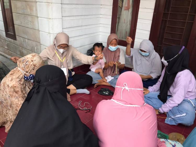 Mahasiswa Kukerta Balek Kampung Unri Ajarkan Cara Pembuatan Strap dan Konektor Masker Kepada Ibu PKK Desa Pandau Jaya