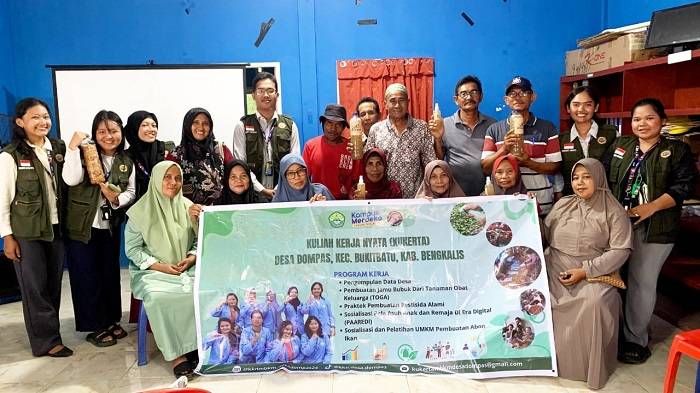 Mahasiswa Kukerta MBKM UNRI Gelar Praktek Pembuatan Pestisida Alami Ramah Lingkungan di Desa Dompas