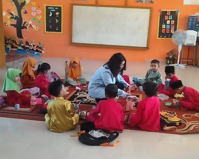 Mahasiswa Kukerta MBKM UNRI Laksanakan Pemberian Susu Untuk Anak TK Negeri Pembina Sungai Apit