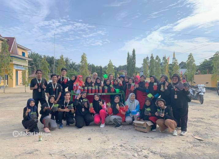 Mahasiswa Kukerta Reguler UNRI Desa Bukit Jaya Tanam Bibit Kangkung Bersama Ibu PKK