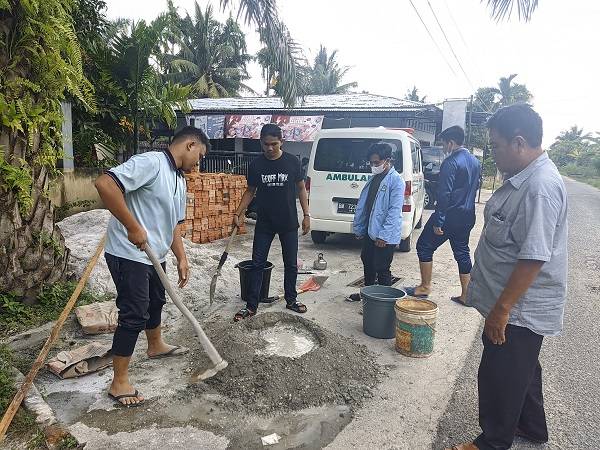 Mahasiswa Kukerta UNRI 2021 Perbaiki Jalan Sukajadi yang Berlubang