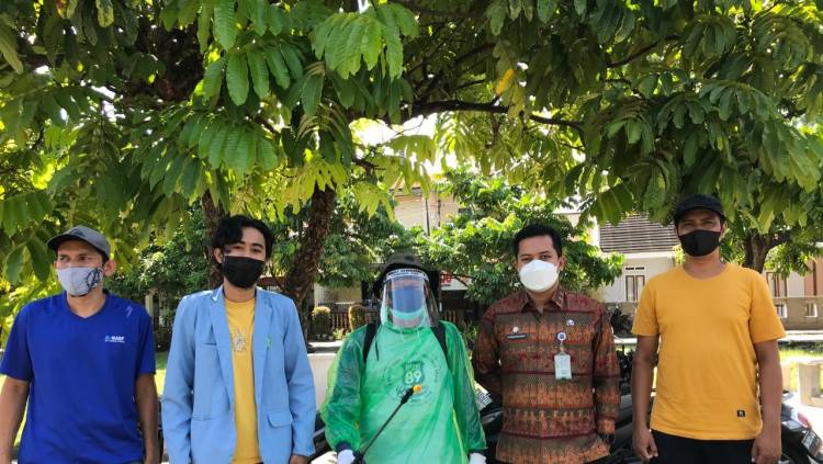 Mahasiswa Kukerta Unri Bersama Lurah Simpang Empat Lakukan Penyemprotan Disinfektan