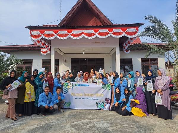Mahasiswa Kukerta UNRI Desa Babussalam Adakan Pelatihan UMKM Ecoprint, Daun Jadi Cuan